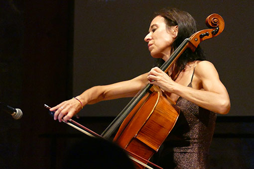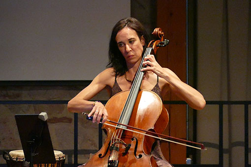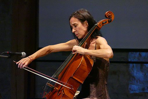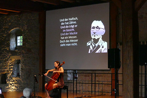 Ein selten zu hörendes Klangerlebnis präsentierte die Cellistin Ruth Maria Rossel ihren Gästen in der Zehntscheuer. Beeindruckend, wie man als Solo-Künstlerin mit einem viersaitigen Instrument einen ganzen Konzertabend so gestalten kann! Vielseitig, was die Stilrichtungen angeht – von melancholischen Klangbildern über argentinischen Piazzolla-Tango und Coldplay-Pop bis hin zu Kurt Weills Mackie Messer, bei dem das Publikum den Haifisch mit den Zähnen gesanglich mithineinschwimmen ließ. Zudem wurde es multiinstrumental durch den Einsatz einer Loop-Machine, mit der sich ein mehrstimmiges Ensemble von Cellos inklusive perkussiver, auf einer Djembe eingespielter Töne zusammenschloss. Untermalt mit lyrischen Bildmotiven und einzelnen Videoszenen gelang Ruth Maria Rossel ein stimmiges Gesamtbild mit einem Musikprogramm, bei dem ihre eigenen Kompositionen genauso zum Tragen kamen, wie die ihres Managers Alexander Mohr, ergänzt durch ein breites Spektrum gekonnt umarrangierter, bekannter Songs.